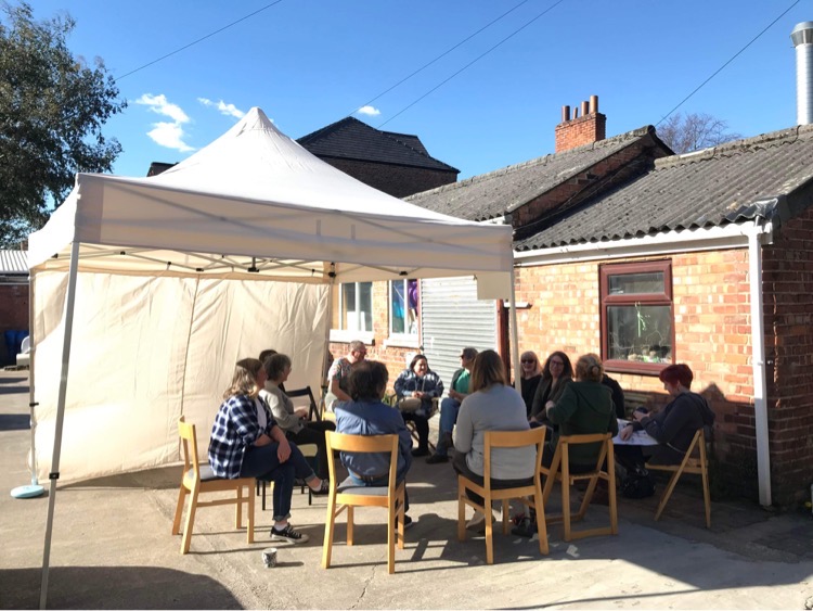 Later my artist’s network group Art ON WIRRAL met at Wellington Road Studios, this is the second of our in-person gatherings that we have held in 2023. Basically it is a facebook group of 2500+ and has a small twitter presence. It developed out of the original group “With These Hands” which still exists but now a smaller closed group. Set up in 2009, it was in recognition of the lack of connection that artists had, or lack of opportunities to connect at the time. The monthly meet ups allowed people to meet and chat and include others in projects. Yesterday was wonderful to be able to meet outside at the studio.