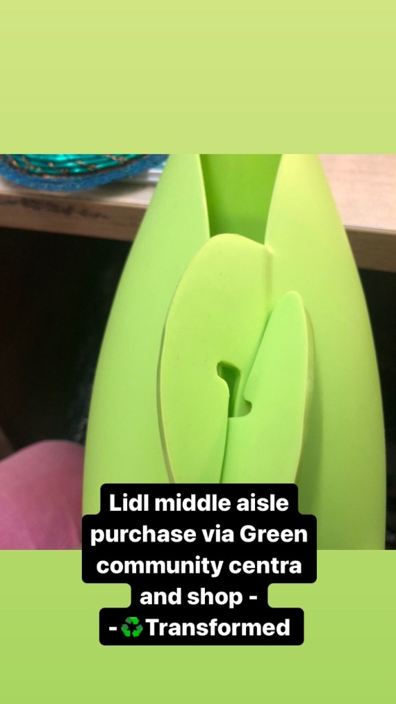 One of my second hand purchases was a weird collapsable green thick rubber fruit or mixing bowl, originally from the middle aisle at Lidl but purchased from the donations to The Green Community Centre and Shop. #Ernesto