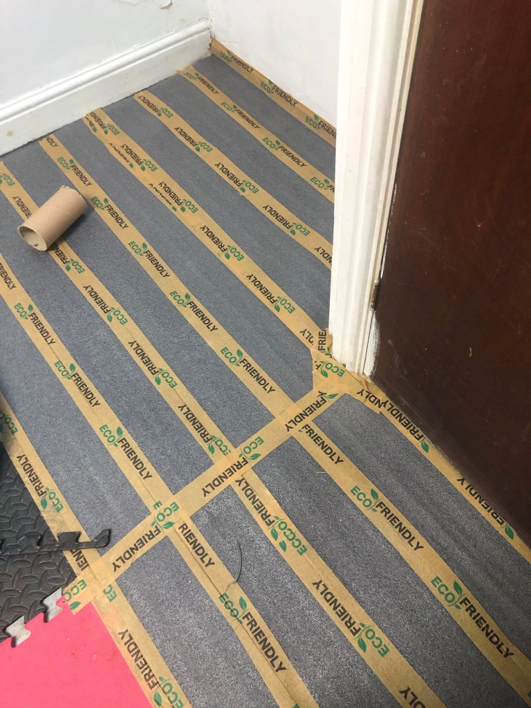 Reusing donated mats from mechanics next door and old play mats bought when my grown up son was a baby in San Francisco, scavenged sound insulation from our local new music venue @future_yard skip when we were doing the @saving_rons_place exhibition last year, with a top layer created from a purchased piece of lino from our local end of use/reduce waste/community paint place @recipro in Wirral and donated thick plastic banners, I have created something in keeping with my branding and ethos.