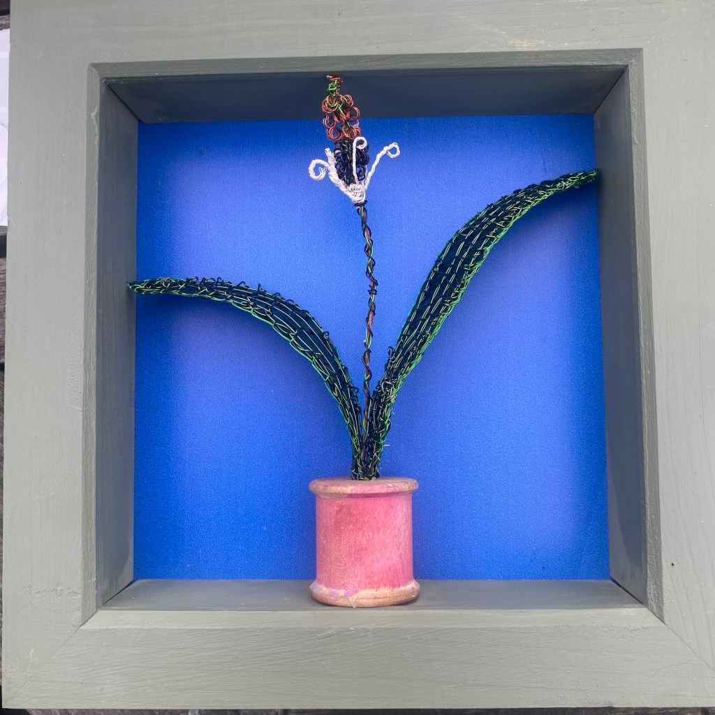 For the forthcoming exhibition at The Atkinson, I have created a number of framed works – my watercolour studies for the commission for flowers in 2022, a new study which became the basis of the design for the fabric for The Floribunda Throne, plus 4 mixed media pieces in box frames.